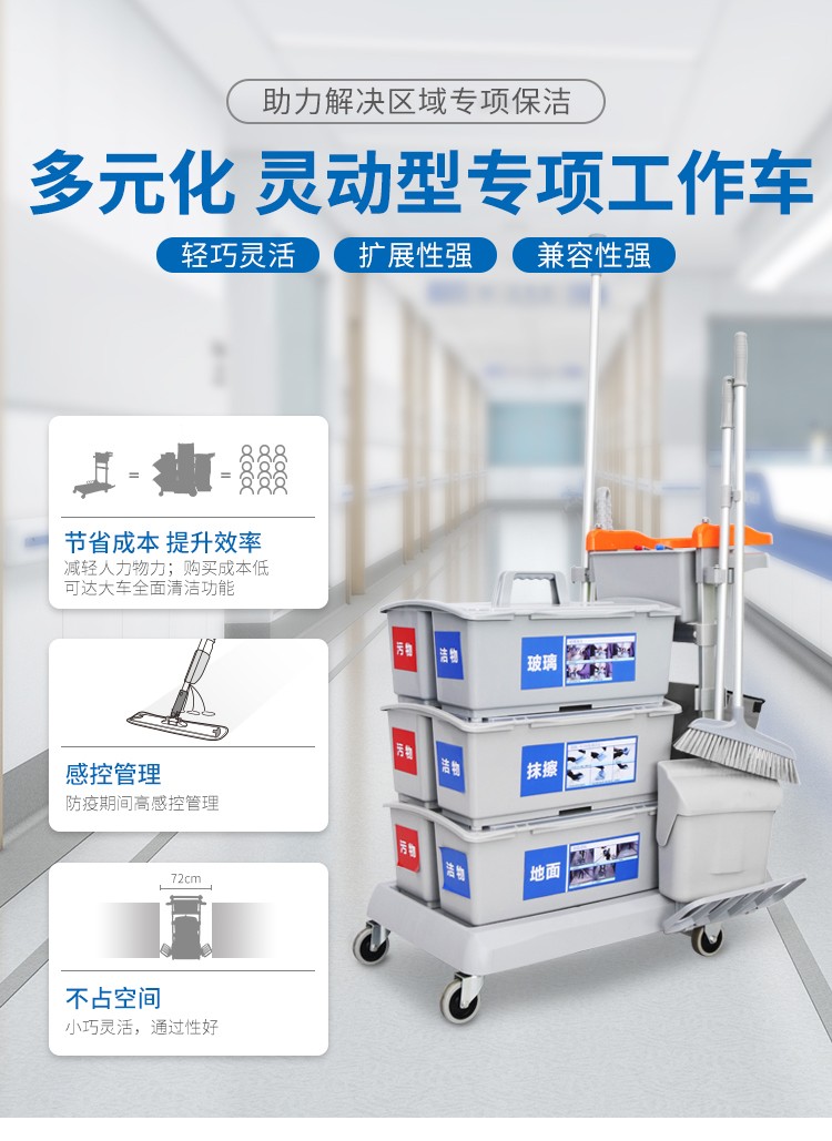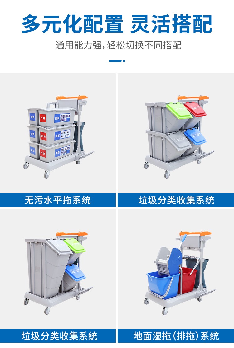靈動(dòng)型平推系統(tǒng)清潔車,配垃圾袋,雙格桶x2,含標(biāo)貼