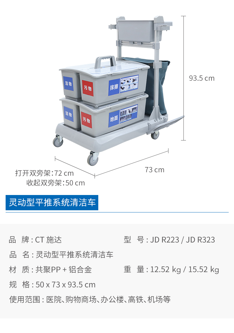 品名:CT 施達(dá) 靈動(dòng)型平推系統(tǒng)清潔車,配垃圾袋,雙格桶x2,含標(biāo)貼 JD R223