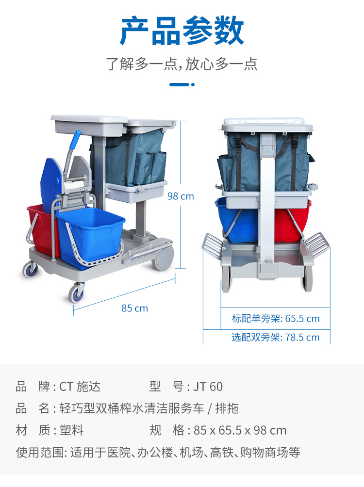 品名:CT 施達(dá) 輕巧型雙桶榨水清潔服務(wù)車 / 排拖 JT 60