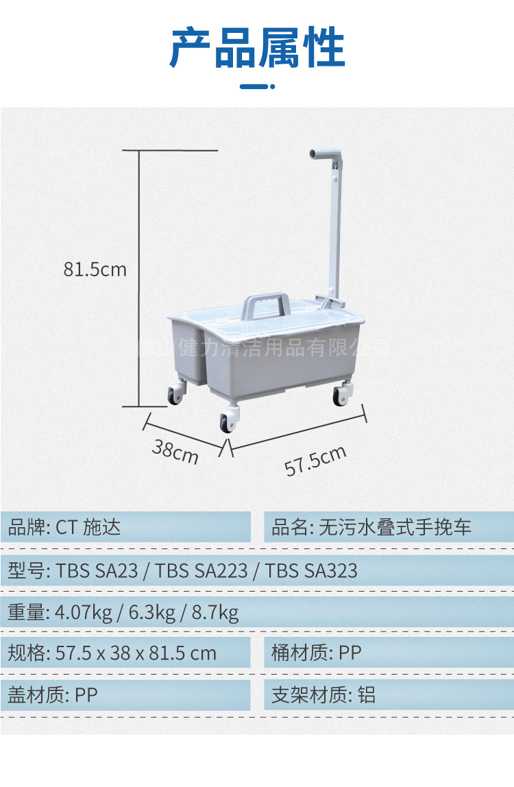- 品名:CT 施達 無污水疊式手挽車(配1個雙格桶) TBS SA23