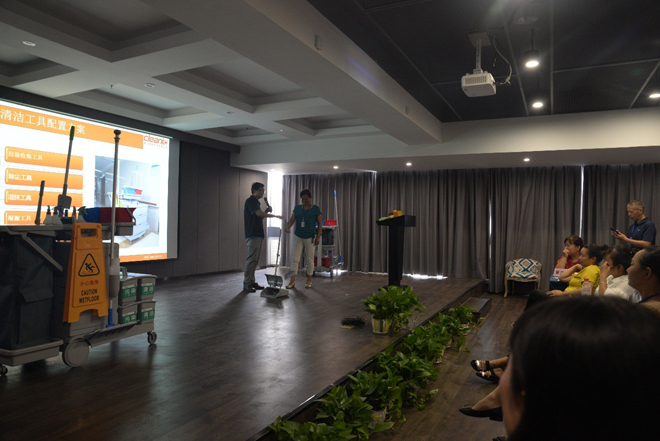 通過現場講解展示,結合日常保潔工具的小比賽,讓來賓們更大程度的理解體會所演講主題內容,最后結合筆試考核,對通過考核的來賓頒發(fā)標準化培訓證書給予肯定。