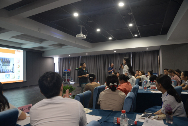 施達業(yè)務營運劉黎明經理與來賓們介紹清潔工具系統(tǒng)和標準化項目管理體系。更與來賓們分享產品使用體驗心得。