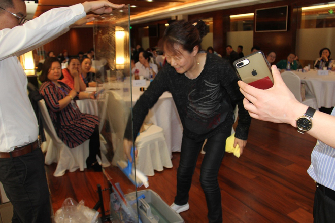 通過(guò)講解演示, 讓來(lái)賓們體驗(yàn)日常保潔工具在各個(gè)不同工作領(lǐng)域中的搭配及應(yīng)用。結(jié)合趣味游戲,與來(lái)賓們互動(dòng)交流體會(huì)心德。最后打鐵趁熱對(duì)所學(xué)知識(shí)進(jìn)行小檢測(cè),對(duì)通過(guò)者頒發(fā)認(rèn)可證書。