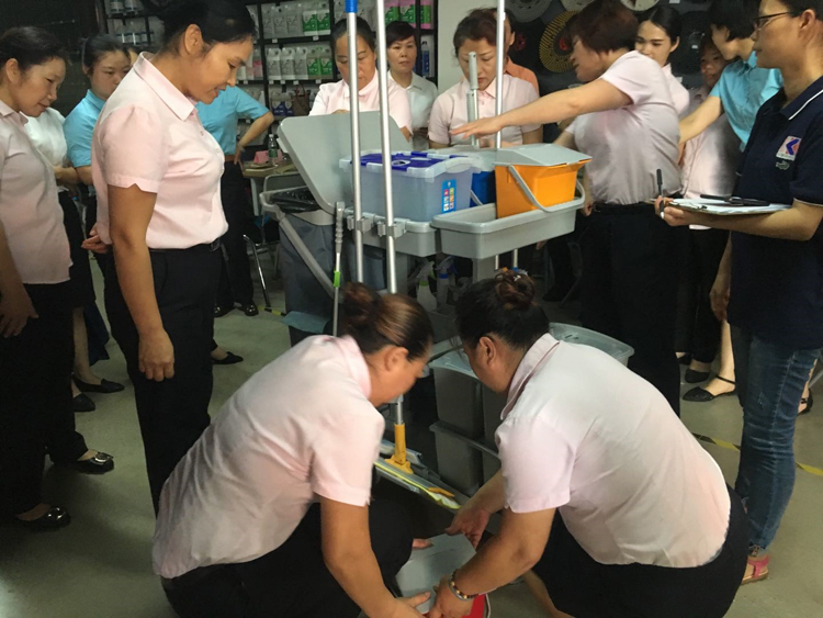 由施達總部分銷業(yè)務(wù)經(jīng)理給來賓們講解演示產(chǎn)品在日常保潔的實際應(yīng)用和管理,讓來賓們了解到日常保潔工具的搭配及使用。