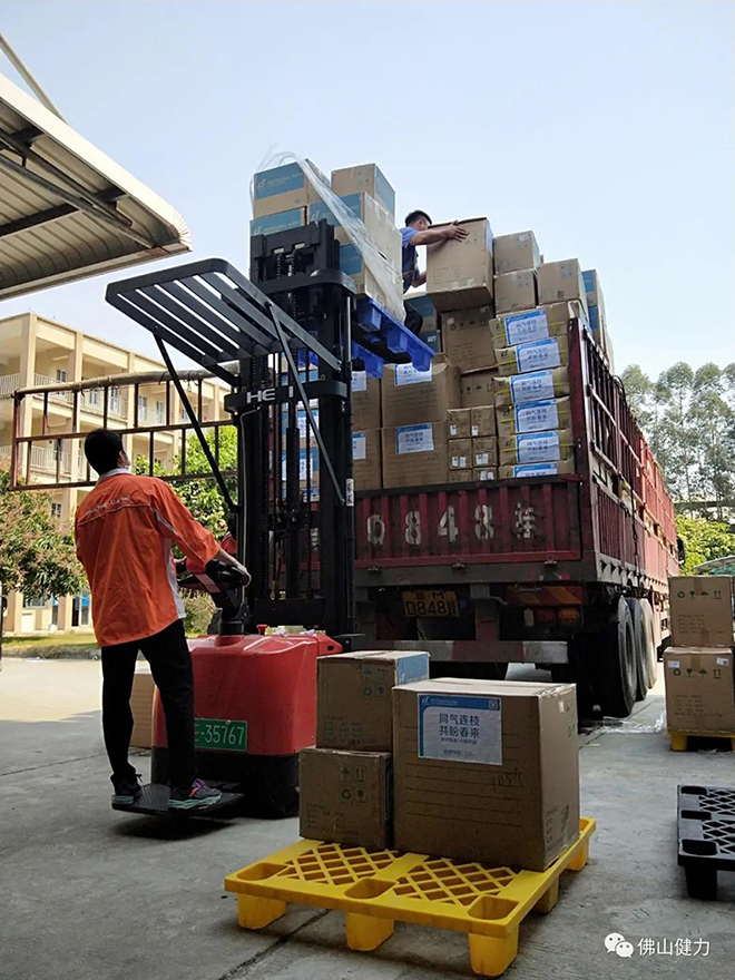 同事正在緊張將發(fā)往武漢雷神山醫(yī)院的物資裝車。