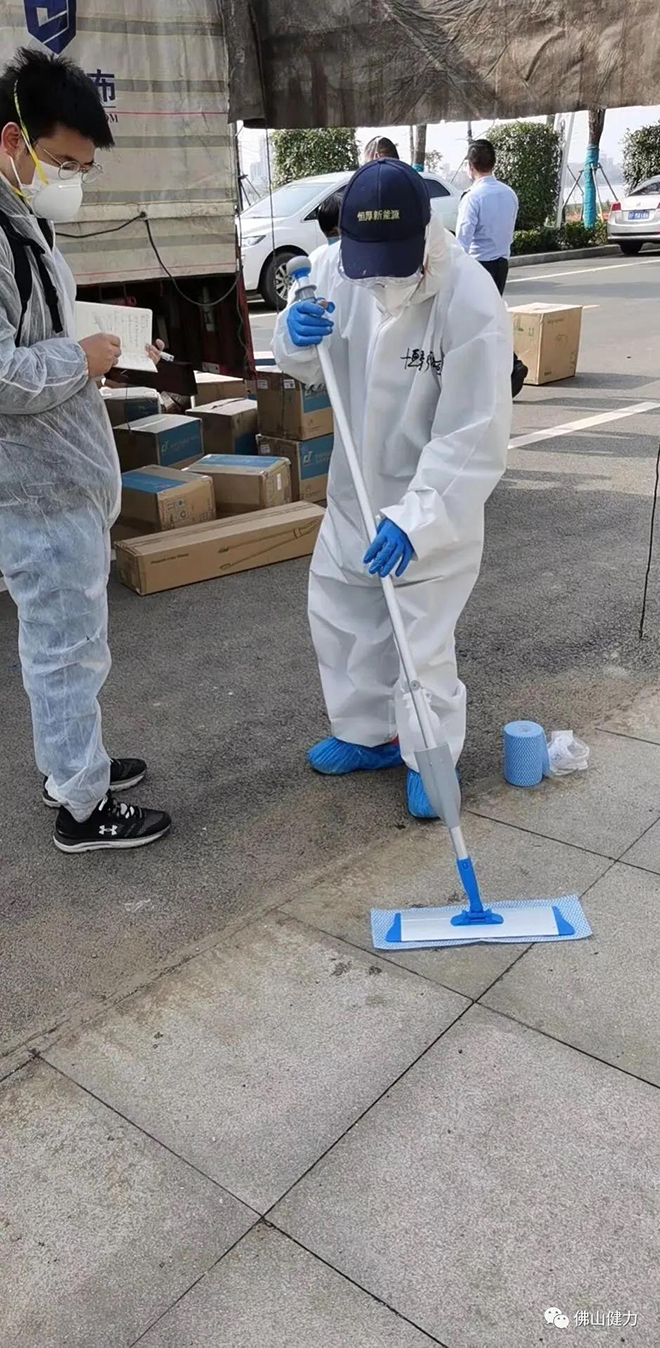 噴水平拖的現場示范,配合一次性易潔布使用,可有效預防交叉感染。