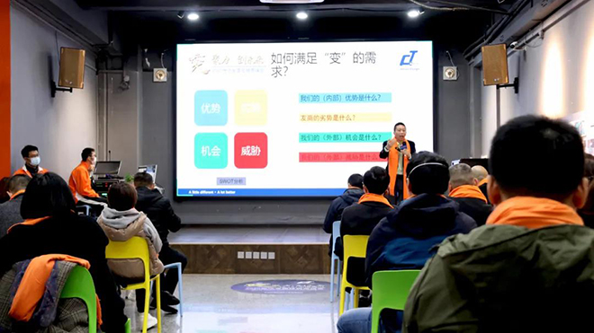 董事長講話后,是管理方隊斗志昂揚、激情澎湃的團隊風采展示!展示的是對營銷的支持,代表的是全力以赴的決心,從上至下,由公司內(nèi)部往外傳達至經(jīng)銷商伙伴們。變革,勢在必行!