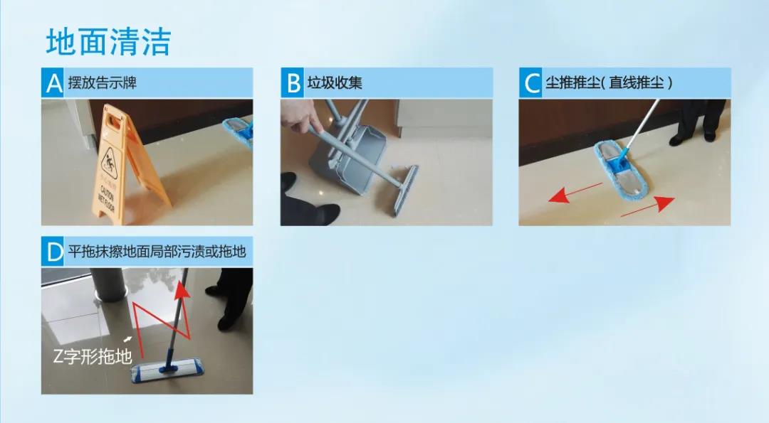 “Z字拖地法”,能最大程度保證清潔度的同時,增加清潔面積;