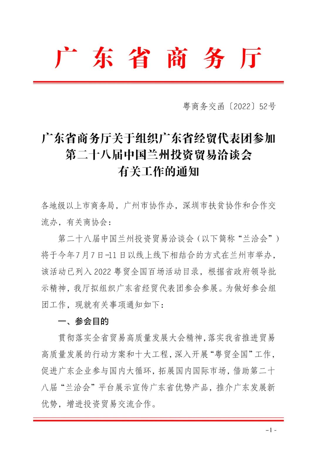 由商務(wù)部、國家市場監(jiān)督管理總局、國務(wù)院臺灣事務(wù)辦公室、中華全國工商業(yè)聯(lián)合會、中華全國歸國華僑聯(lián)合會、中國國際貿(mào)易促進委員會和甘肅省人民政府共同主辦的第二十八屆中國蘭州投資貿(mào)易洽談會(以下簡稱“蘭洽會”)于2022年7月7日-11日在甘肅蘭州正式舉行。