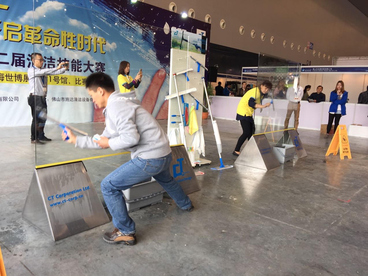 在第十六屆中國清潔博覽會期間, 我司于展覽館內舉行施達杯 – 第二屆玻璃清潔大賽, 今次共有20多間公司單位參與, 比賽過程異常激烈。