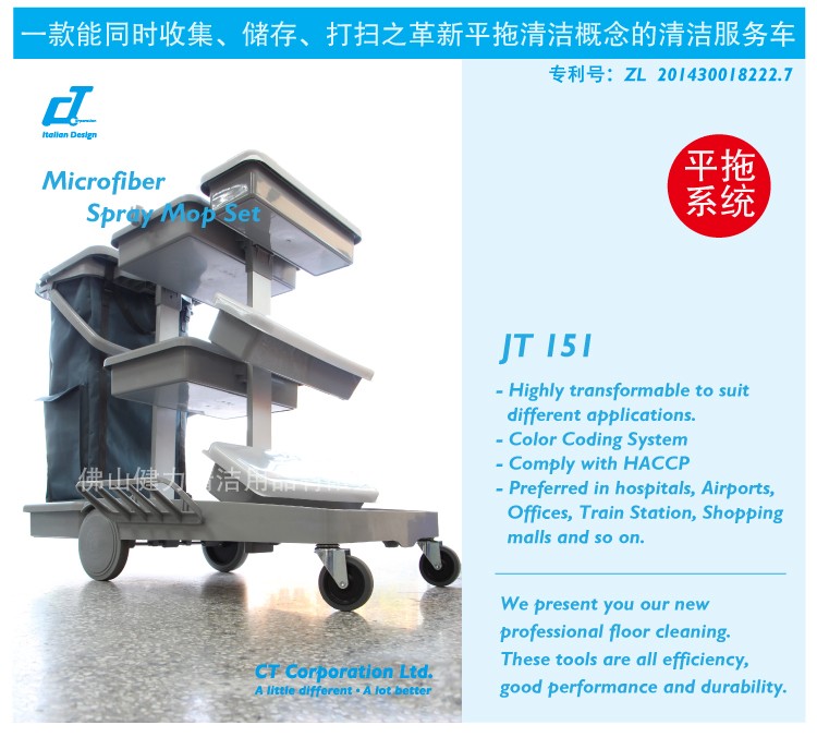佛山施達(dá)產(chǎn)品中央清洗保潔系統(tǒng)核心平臺(tái): 施達(dá)JT 151綜合噴灑平拖服務(wù)車以出色的設(shè)計(jì)和革新的清潔理念榮獲“年度清潔用品皇冠獎(jiǎng)”。
