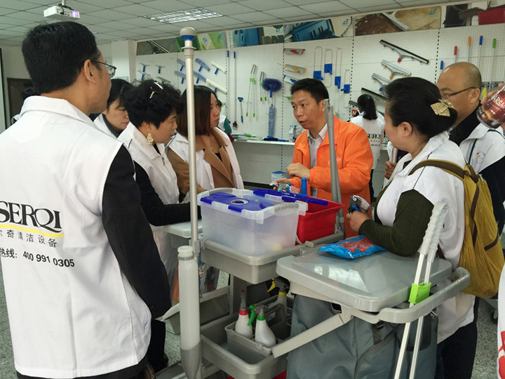 產(chǎn)品經(jīng)理周建國先生展示中央清洗噴灑平拖清潔系統(tǒng)簡易操作