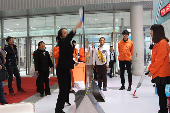 展會(huì)期間施達(dá)區(qū)域舉辦了玻璃清潔挑戰(zhàn)賽,各路英雄一展雄風(fēng),現(xiàn)場異常火爆