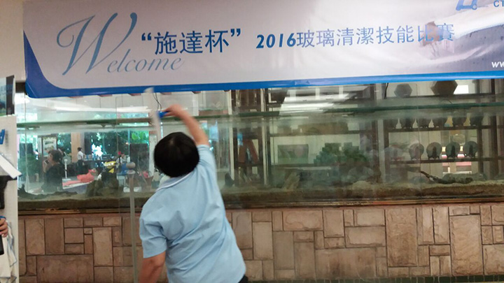 其中由‘佛山施達’冠名舉辦的玻璃清潔技能大賽進行的如火如荼,佛山地區(qū)十多家資深清潔企業(yè)派遣行業(yè)精英參與競技,比賽現(xiàn)場競爭激烈,比賽所用工具由佛山施達提供,其中最主要的玻璃刮是施達最新產(chǎn)品2合1雙面玻璃刮, 使用該玻璃刮能大大減少選手操作時間而提高效率,經(jīng)過一個多小時的角逐最終產(chǎn)生前三優(yōu)秀人員。
