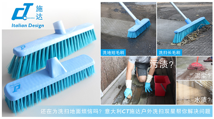 意大利CT施達(dá)推出的新品戶外洗掃刷“雙星”能幫你輕松解決這些問(wèn)題,施達(dá)戶外毛刷采用優(yōu)質(zhì)PET材料,刷毛具有韌性強(qiáng)、耐磨度高且不容易彎曲變形等特點(diǎn),無(wú)論是刷洗污漬還是清掃泥沙都能讓你稱心如意,具有清潔效果好、使用壽命長(zhǎng)的優(yōu)點(diǎn)。