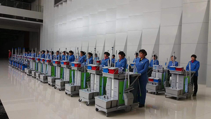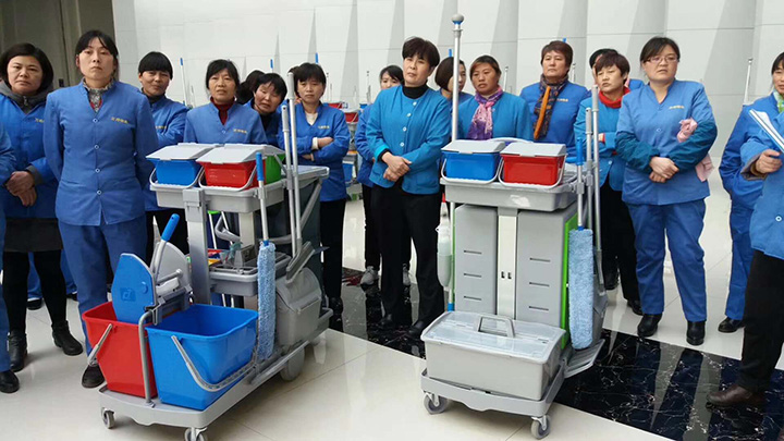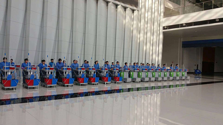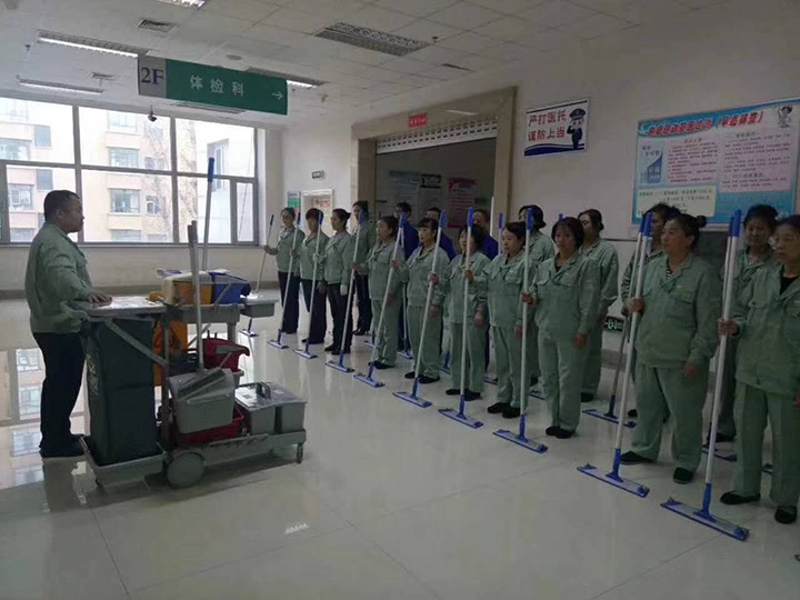 整齊的隊列,嚴謹?shù)呐嘤?xùn),我們的清潔隊伍也能讓人感受出軍隊的紀律,有木有?為我們的保潔人員點個贊。